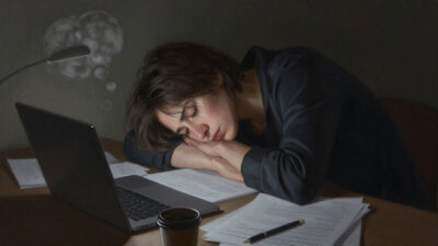 Tekanan kerja di malam hari bisa memicu stres. Cobalah teknik manajemen stres seperti pernapasan dalam, journaling, atau berbicara dengan orang terpercaya untuk membantu mengurangi beban pikiran.